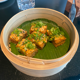 We did the four-course lunch menu, which took about 3 hours. This was great because you get to do about 3/4 full rotations. My favourite part was getting to see the kitchen. It was awesome to see the chefs at work. We also added on the oyster tasting and fried rice cakes. Both were 10/10. For drinks, try the sparkling iced tea!! It is so much better than the canned Lipton one, which I actually really like too!