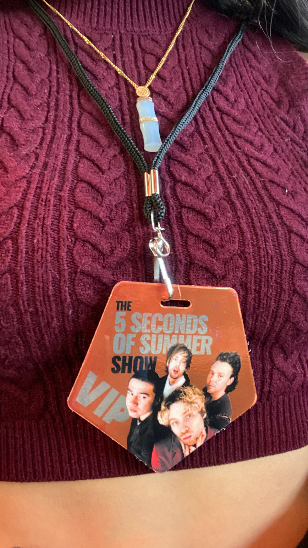 This seemed beneficial at first, but it actually felt more unfair because not everyone knew about it, so the lucky ones could have come extremely early--even the day before--and gotten their number and went back to the hotel. Meanwhile, there are people like me who planned to stay the entire time and hold our place fair and square. There were so many people who weren't there when we finally lined up, and it was really annoying to see people come last-minute in their cute outfits and full-on makeup because they were hanging out in their hotel. I saw a lot of cute outfits, like this amazing 5SOS5 jacket!