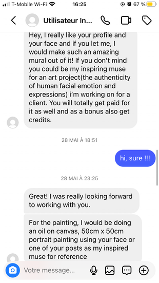 We've all seen sugar daddies and sugar mommas try to slide into our DMs or comment on our posts, but the newest scam I've been getting a lot of is from "artists" who want to make a mural of me. The first time I got this message, I was very flattered and thought nothing of it since they were not initially asking for money. Then, the person started contacting me more frequently and I ended up blocking them. Now, I don't know 100% that this person was going to ask for money, but there are many other possibilities, like sending a link later on and getting my IP address.